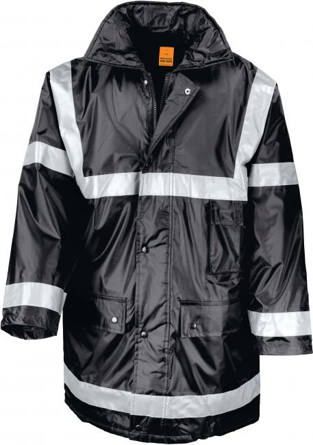 Dit beschermende kledingstuk is gemaakt van zwaar gecoate polyester en is volledig waterdicht (1600mm). De naden zijn thermogesoldeerd voor betere duurzaamheid en optimale bescherming tegen weersomstandigheden. De capuchon is geïntegreerd in de kraag voor meer comfort en de gevoerde voering biedt extra isolatie. 3M reflecterende banden zijn geïntegreerd voor betere zichtbaarheid bij weinig licht. Het heeft ook 2 voorzakken met drukknopen, 1 externe telefoonzak en 1 binnenzak. Een achteropening is voorzien voor het merken. Dit beschermende kledingstuk is de ideale bondgenoot om weersomstandigheden te trotseren.