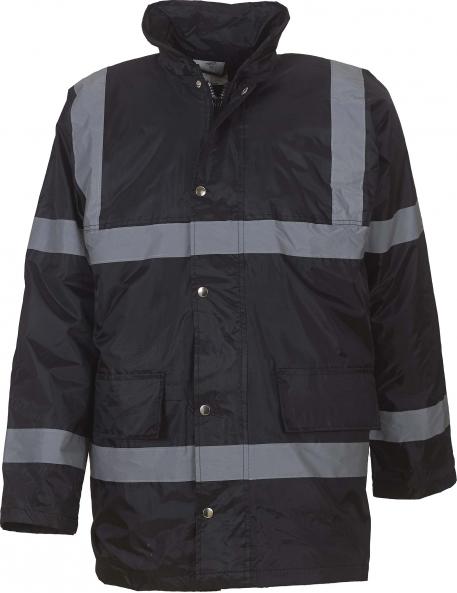 100% nylon. 420D nylon buitenkant met PU-coating, 190g gewatteerde vulling en nylon voering. Volledig waterdicht en winddicht. Ultrabestendige ritssluiting met stormflap met drukknopen. 2 buitenzakken met klep. Elastische tricot manchetten. Capuchon met trekkoorden geïntegreerd in de kraag. Binnenzak op de borst. Volledig genaaide en verlijmde naden voor een perfecte afdichting.
