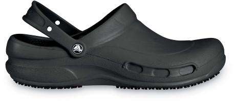De Crocs? Bistro zijn ontworpen om professionele gebruikers in de horeca, hotel- en gezondheidsindustrie optimaal comfort en maximale veiligheid te bieden. Met een antislipontwerp en extra bescherming voor de tenen zijn deze klompen de ideale keuze voor werkomgevingen. De antislip Crocs Lock? zool is volledig gemaakt van Croslite? schuim voor uitzonderlijke lichtheid en duurzaamheid. De specifieke vorm van de voetbed en de Croslite? hielriem garanderen een optimale pasvorm en een comfortabel gevoel. Een gesloten voorontwerp en een dikkere metatarsale zone beschermen de bovenkant van de voet tegen vloeistoffen. Ze zijn gemakkelijk schoon te maken met water en zeep en drogen snel. Deze klompen zijn CE-gecertificeerd en getest volgens de ASTM F2913-11-norm en EN ISO 20347:2012 OB SRC-norm. De Crocs? Bistro zijn de perfecte oplossing voor professionals die op zoek zijn naar optimaal comfort en veiligheid.