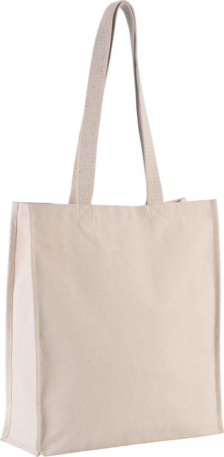 Deze grote, katoenen canvas tas met een zwel is de ideale metgezel voor uw reizen. De lange ecru katoenen hengsels van 70 cm bieden u een comfortabele en praktische grip.