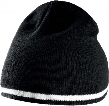 Dit gebreide hoedje is gemaakt van 100% acryl en heeft een twee-kleurig contrasterend randje dat een stijlvolle touch aan je look geeft.