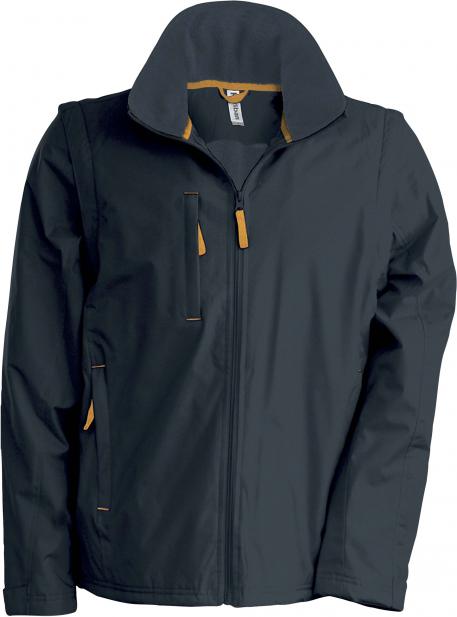 Deze kwalitatief hoogwaardige sportjas is 100% gemaakt van polyester met een PVC-coating. De voering van 100% polyester is zacht en comfortabel. De jas heeft een ritssluiting en 3 ritszakken. De mouwen zijn afneembaar en met ritsen afgesloten en er is een manchettenkoord aanwezig. De ritstrekker, de kraagkoord en de contrasterende stoptstiksels geven de jas een stijlvolle uitstraling. De jas heeft ook 3 binnenzakken (2 met rits en 1 telefoonzak) en een contrasterend binnenkoord aan de onderkant. Er is een kap aanwezig in de kraag en er is een ritssluiting voor personalisatie beschikbaar. Deze sportjas is de perfecte keuze voor outdooractiviteiten.