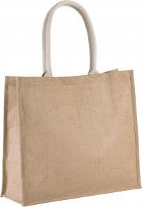 Deze jute strand-/shoppertas is elegant en praktisch. De katoenen hengsels bieden een comfortabele grip en de klittenbandsluiting zorgt voor extra veiligheid. Het is perfect voor stranddagen of voor je boodschappen.